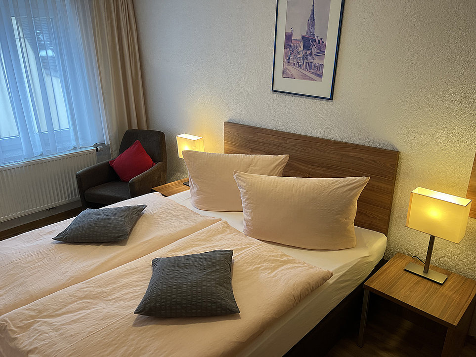 • mit Dusche/ WC im Zimmer inkl. Frühstück: 98 €