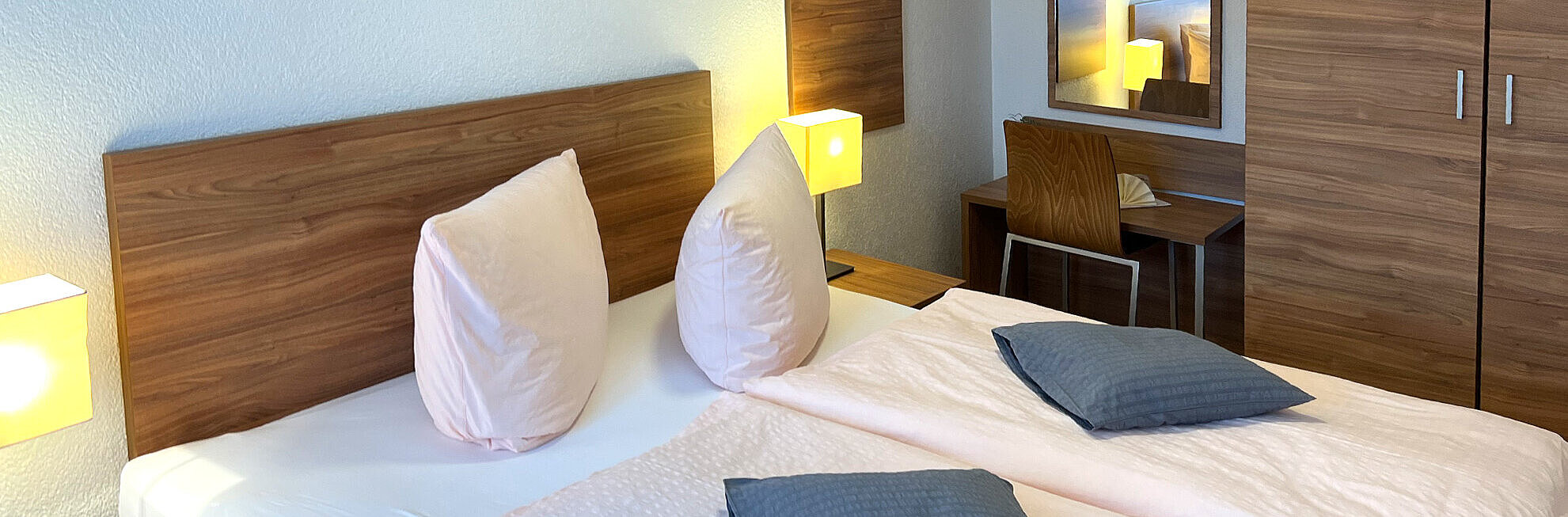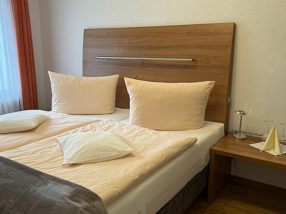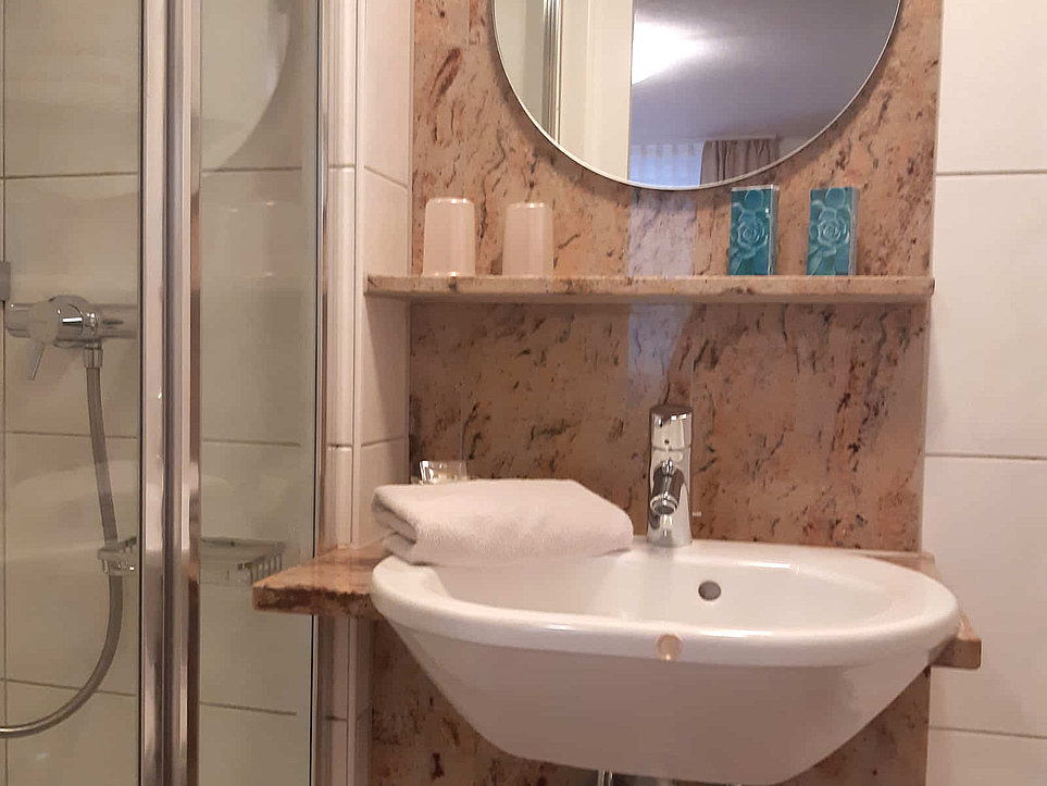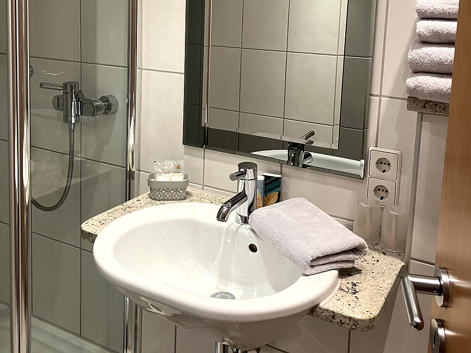 Die Zimmer sind teilweise mit DU/WC ausgestattet, wir bieten aber auch günstigere Zimmer mit Waschbecken und DU/WC auf dem Gang.